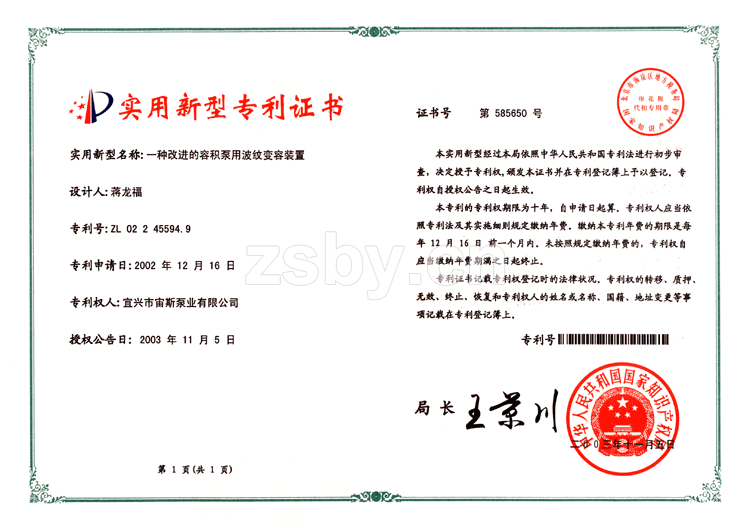 一種改進(jìn)的容積泵用波紋變?nèi)菅b置(ZL02245594.9)